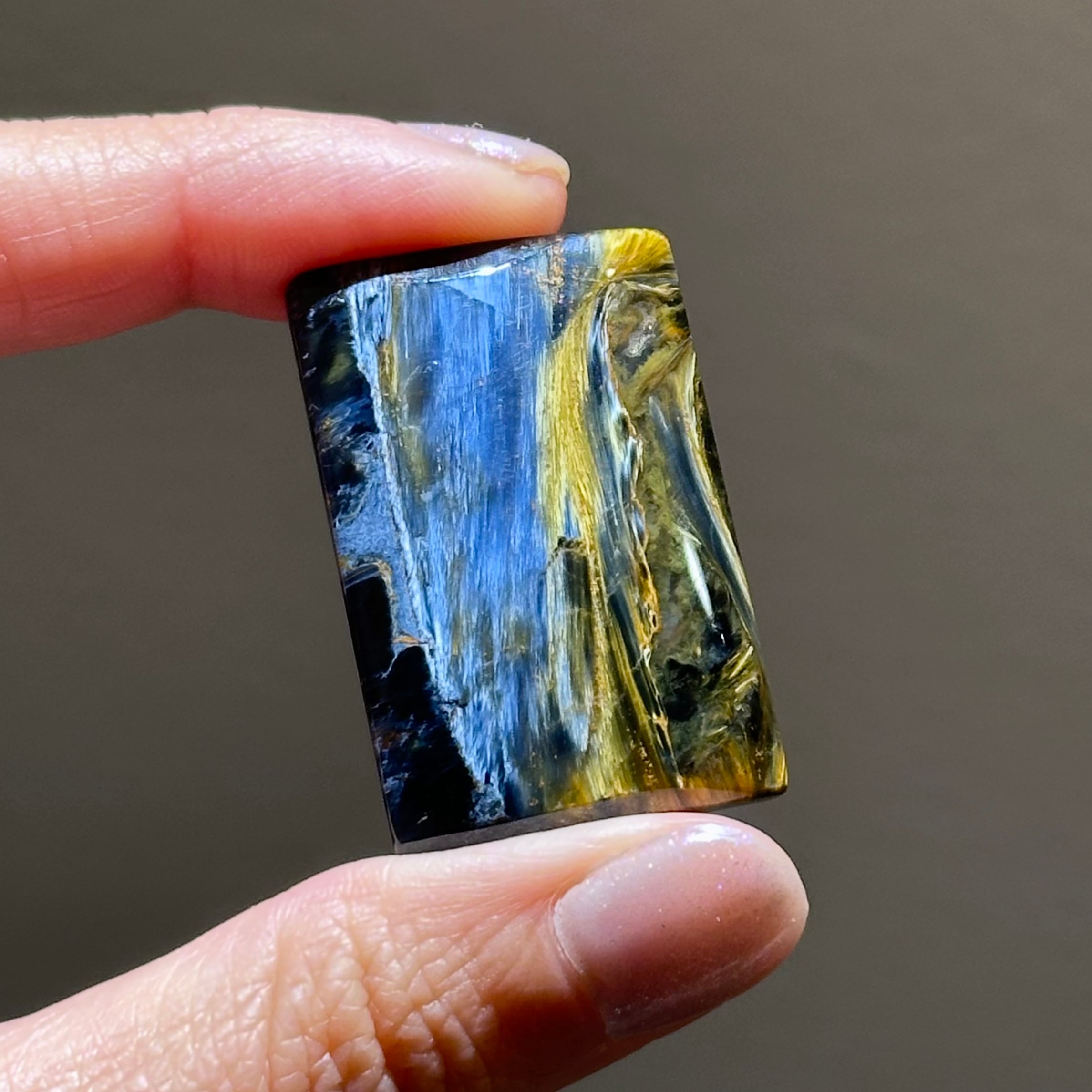 Size: 3.5 x 2.3 x 0.8cm Locality: Namibia - 納米比亞 · 彼得石,亦稱為鷹眼石,於1962 年於納米比亞被發現,並以發現者 Sydney Pieters 命名。彼得石是虎眼石的變種。 彼得石可開啟及平衡各脈輪,消除疲勞,令人增加精神活力及平衡內分泌。 彼得石有助開發個人潛能,幫助加強自信,使人有勇氣、無畏精神,勇敢面對困難。 同時,彼得石幫助你去除負面感覺,如恐懼、迷惑、混亂、怒火,也能使思路清晰